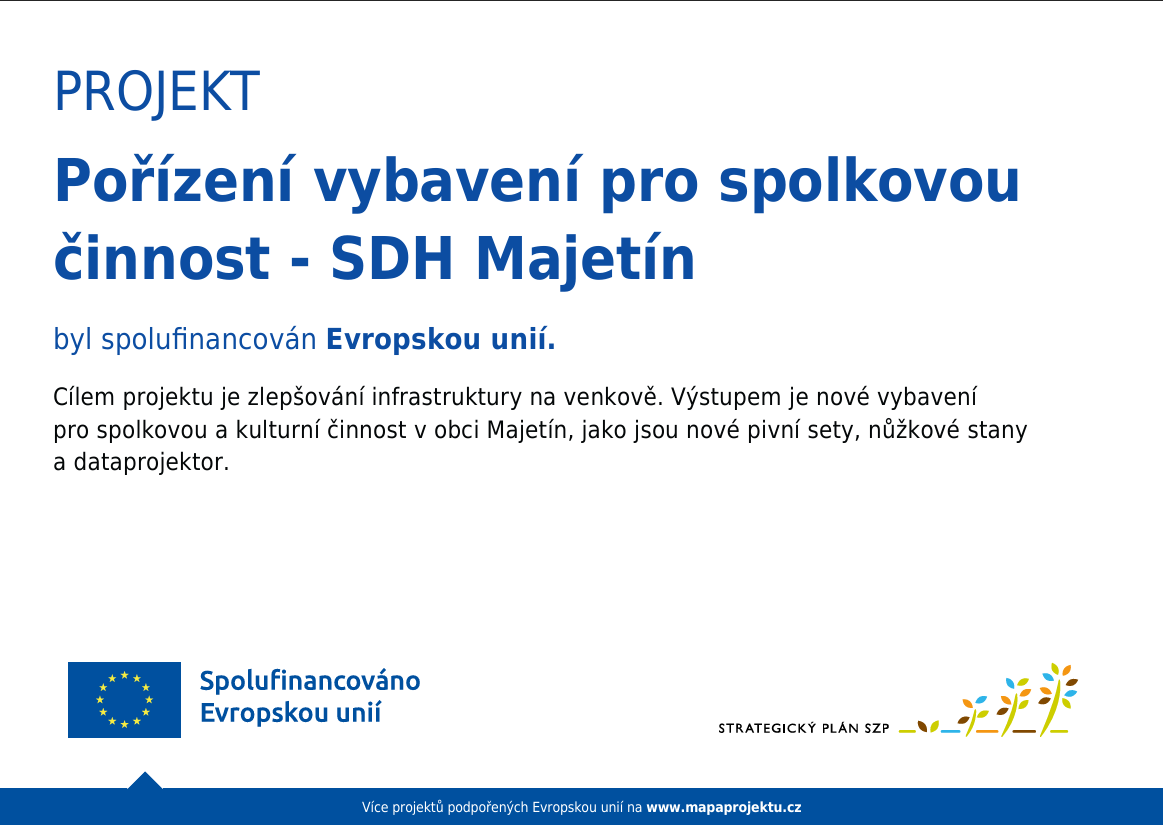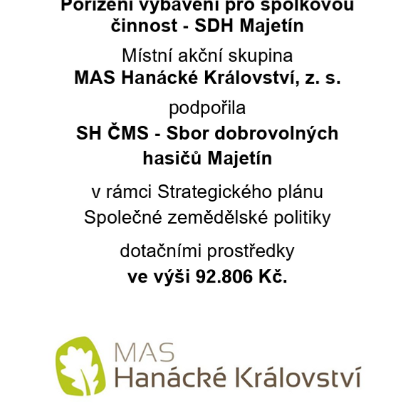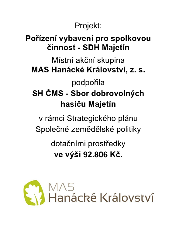 Projekt - Pořízení vybavení pro spolkovou činnost - SDH Majetín